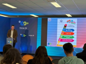 Ο Μάνος Πετράκης, Φυσικός, PhD, Διευθυντής του Αρσακείου Λυκείου Πατρών και μέλος της Επιτροπής Λειτουργίας & Διαχείρισης της Εστίας Επιστημών Πατρών, παρουσίασε την «Εστία Επιστημών Πατρών “Κωνσταντίνος Δημητριάδης” (https://www.estiaepistimon.gr/ ) ως έναν πρωτοποριακό χώρο μάθησης, ο οποίος λειτουργεί συμπληρωματικά προς τα προγράμματα σπουδών των Αρσακείων Σχολείων, ενισχύοντας τη βιωματική μάθηση και την ερευνητική διάθεση των μαθητών.