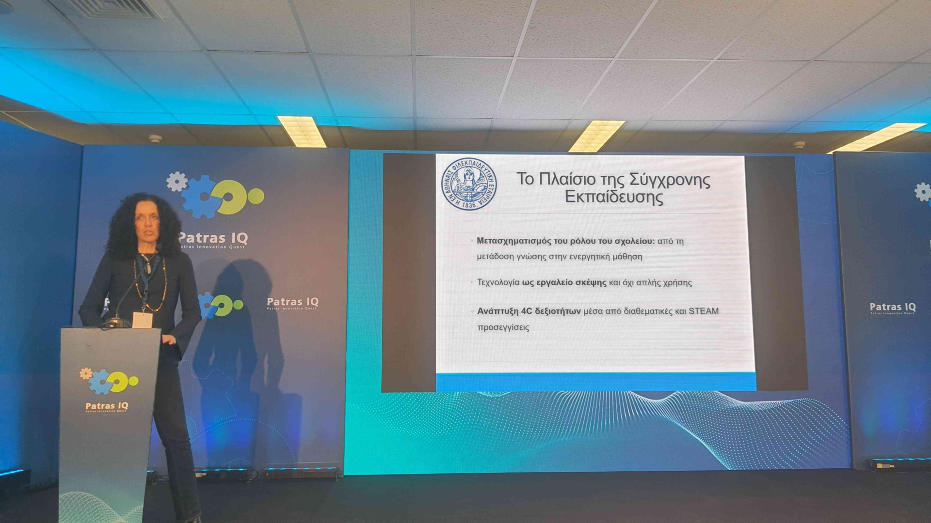 Τέλος, η Ηλέκτρα Γιαννούλη, Καθηγήτρια Αγγλικής Γλώσσας, Διευθύντρια του Αρσακείου Δημοτικού Πατρών, παρουσίασε την εισήγηση «Καινοτομία και STEAM στην Πρωτοβάθμια Εκπαίδευση», αναδεικνύοντας τον τρόπο με τον οποίο οι μαθητές από μικρή ηλικία έρχονται σε επαφή με σύγχρονες παιδαγωγικές προσεγγίσεις, μέσα από διαθεματικά έργα, πειραματισμό και δημιουργικές δραστηριότητες.