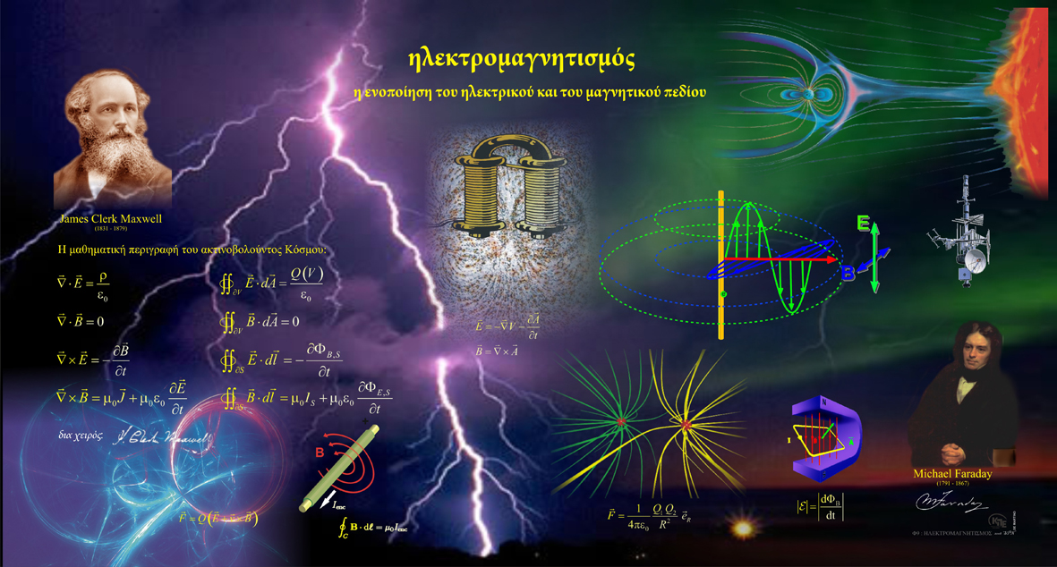 James Clerk Maxwell: Συνέλαβε τις εξισώσεις που συνδυάζουν τις γνωστές μέχρι τότε θεωρίες του ηλεκτρισμού και του μαγνητισμού. Αυτές οι εξισώσεις έδειξαν ότι το ηλεκτρικό και το μαγνητικό πεδίο είναι αλληλένδετα και συνδέονται με την κίνηση των ηλεκτρικών φορτίων.